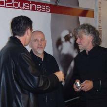 Peter Gabriel, Charles Grimsdale und Uwe Jens Neumann erhalten mit dem SPUTNIK Innovator Award 2003 je einen Textbandring. Der Award ging 2002 an Tim Renner.