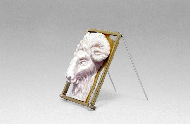 • Designerbrosche, Widderkopf Elfenbein, Gold, Brill