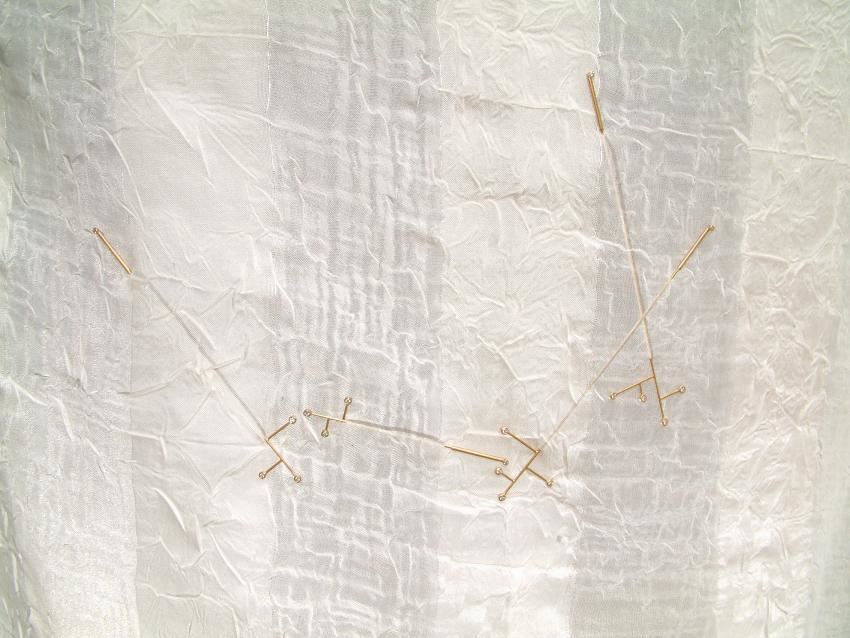 Das Set2 besteht aus beliebig vielen Nadeln (Broschen), welche frei durch ihre Anordnung kombinierbar, auch zum Halsschmuck werden kann.