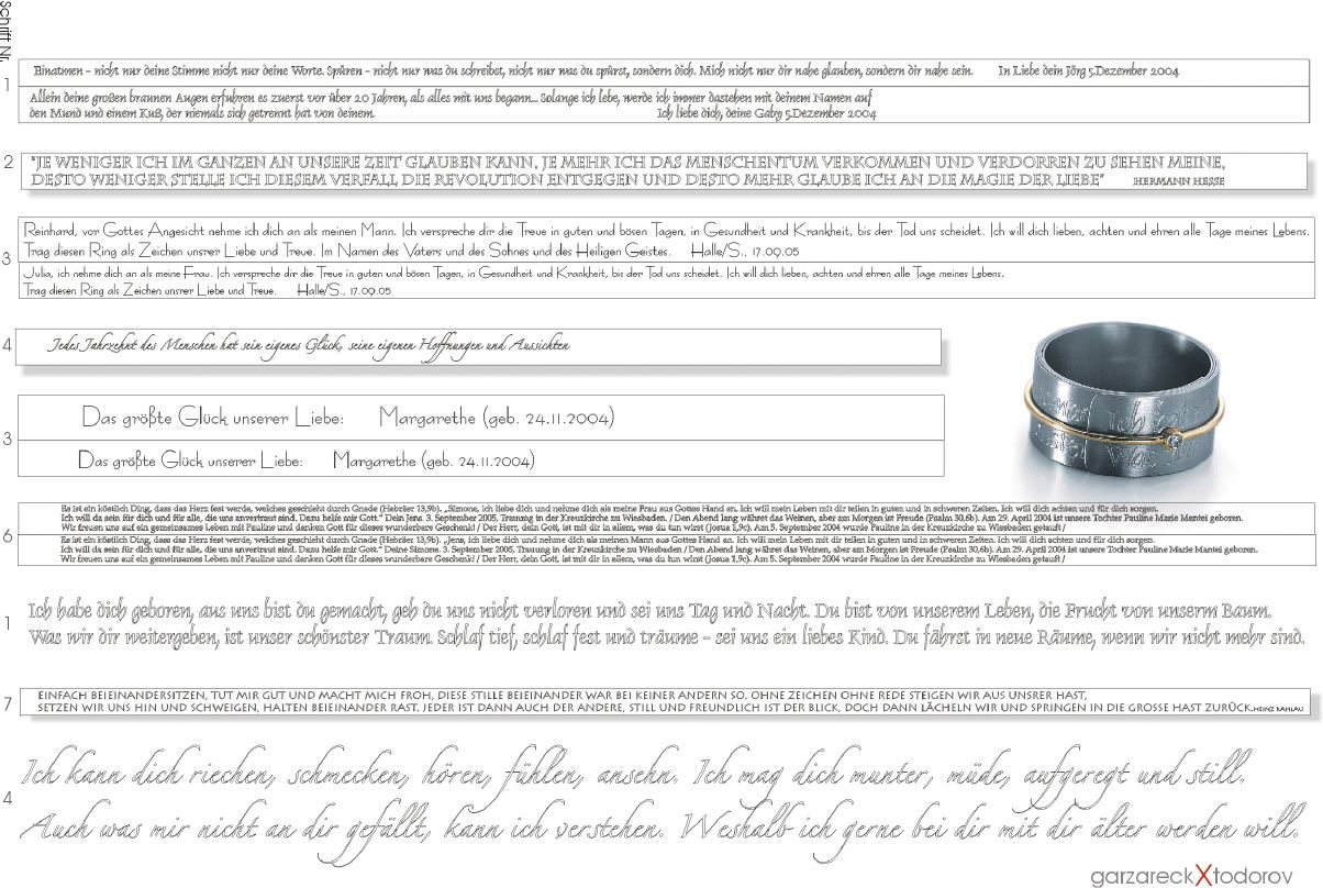 Rechts: Texte, die heute auf Textbandringen stehen ->