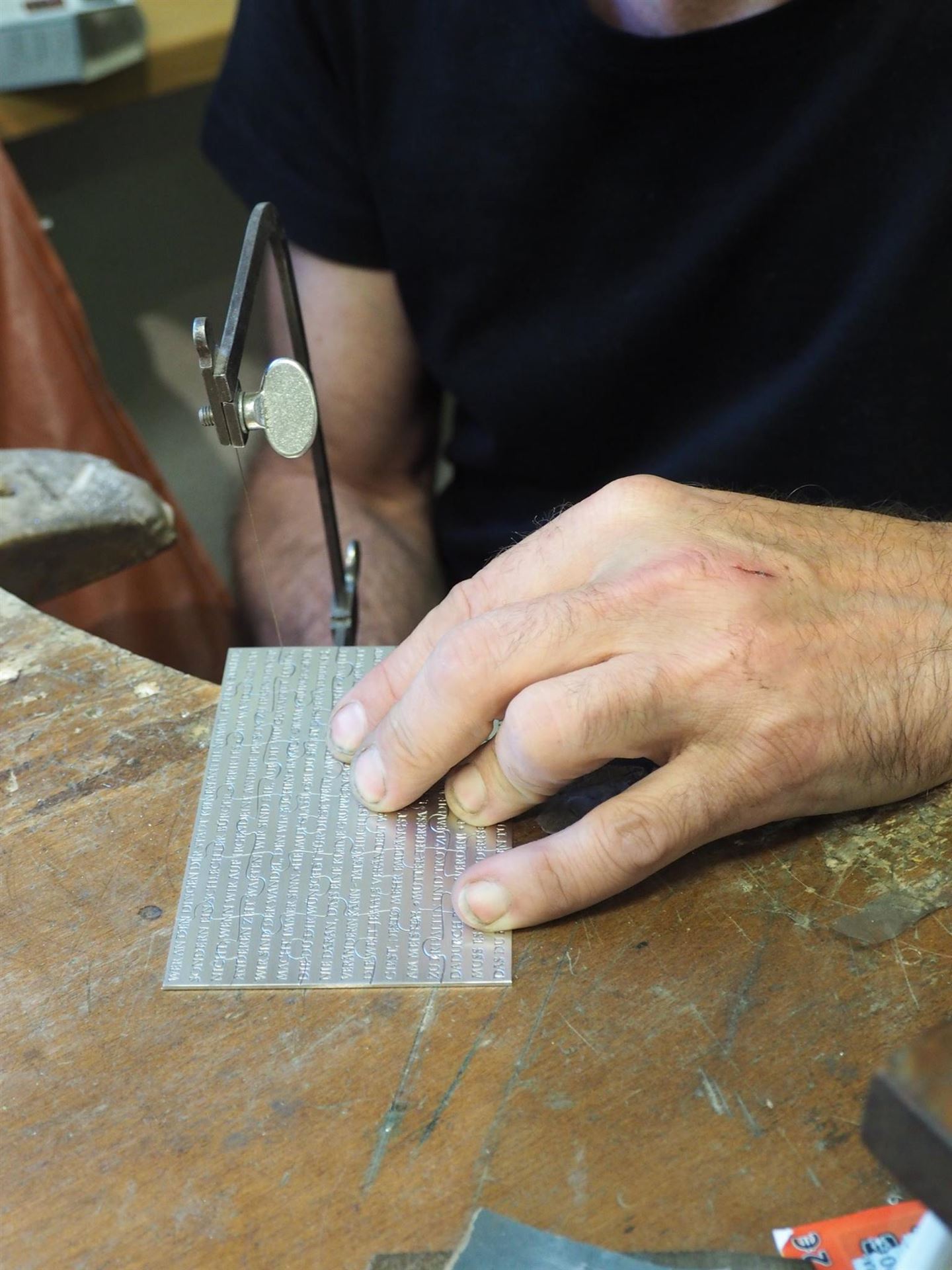 Aussägen der ersten Teile für die Ehrennadeln der Stadt Arnstadt